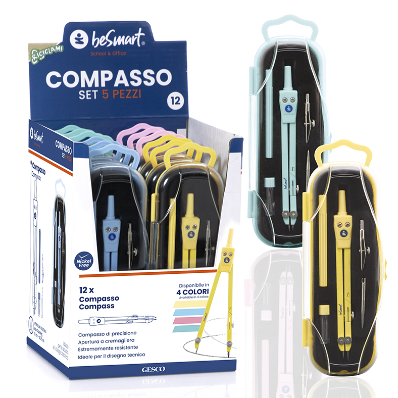 COMPASSO SET 5Pz CON TIRALINEE IN BOX DA 12 BE SMART