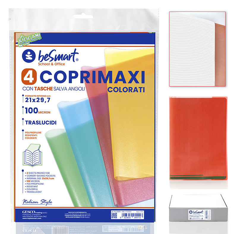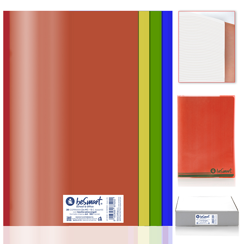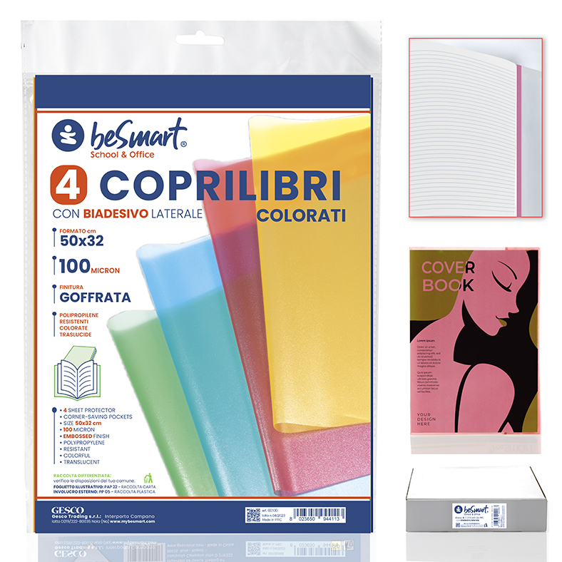 COPRILIBRI COLORATI 50X32CM 100MIC CON ADESIVO LATERALE SET 4PZ BE SMART