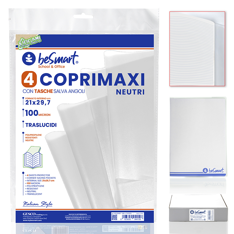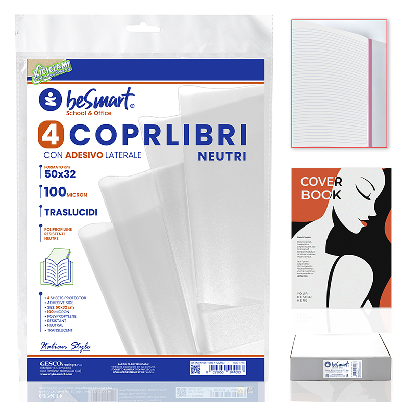 COPRILIBRI NEUTRI 50X32CM 100MIC CON ADESIVO LATERALE SET 4PZ BE SMART