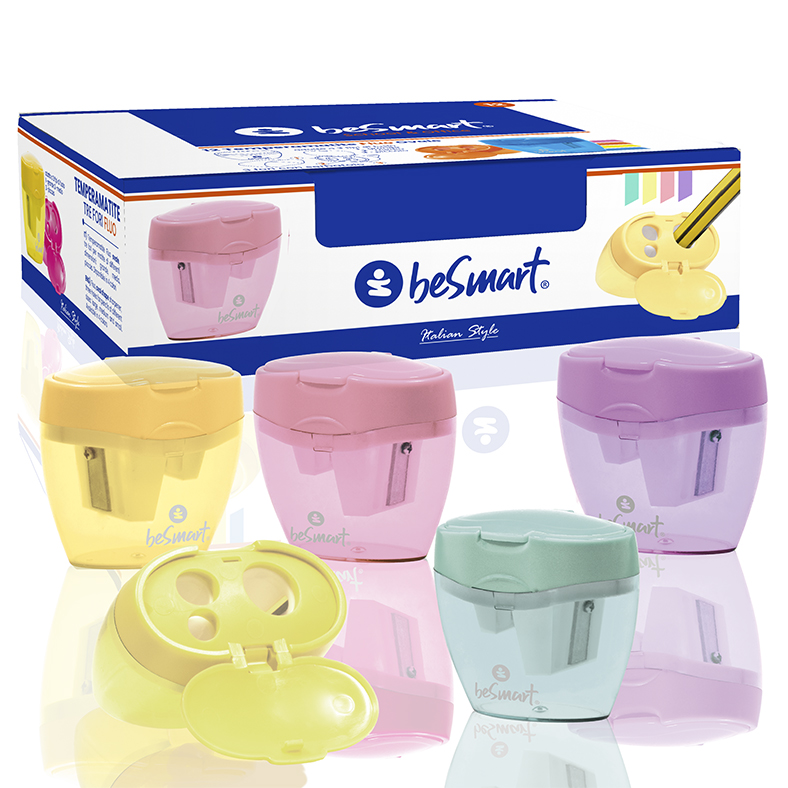 TEMPERINO EXAGON 2FORI IN BOX DA 12PZ, 4 COLORI PASTEL BE SMART