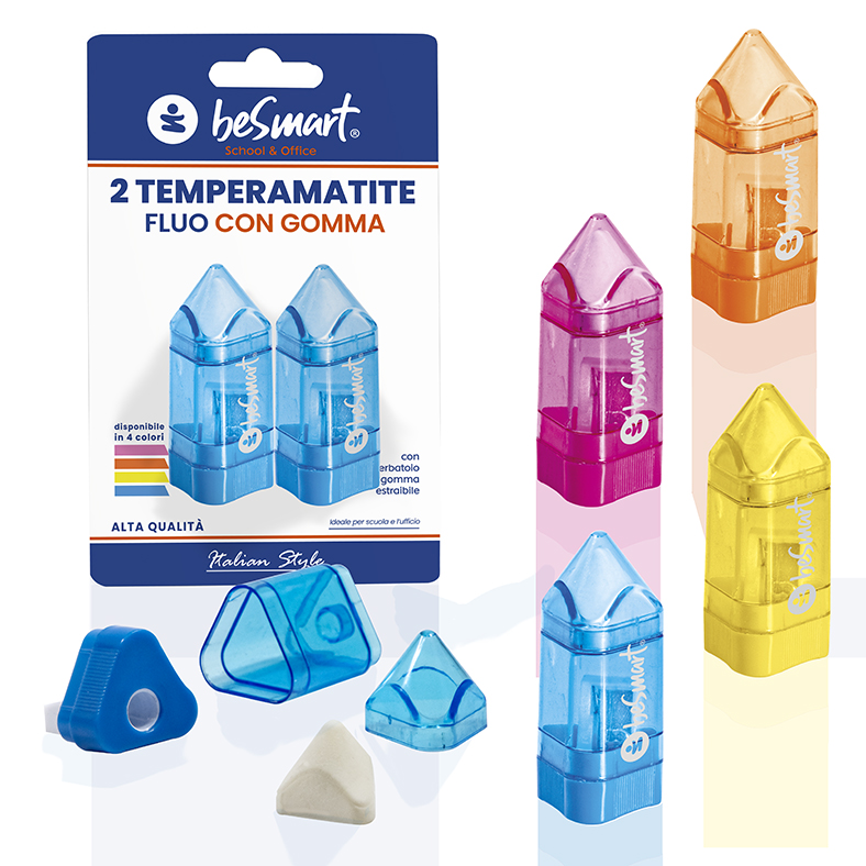 TEMPERAMATITE MATITA C/GOMMA 4 COLORI FLUO IN BLISTER DA 2 BE SMART