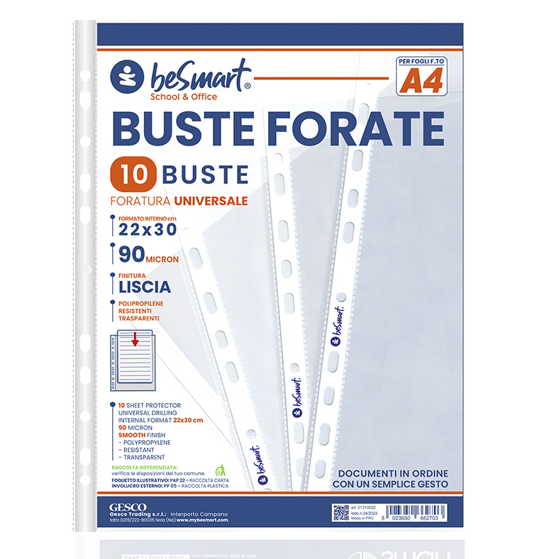 BUSTE FORATE LISCE A4 90MICRON CF 10PZ BESMART
