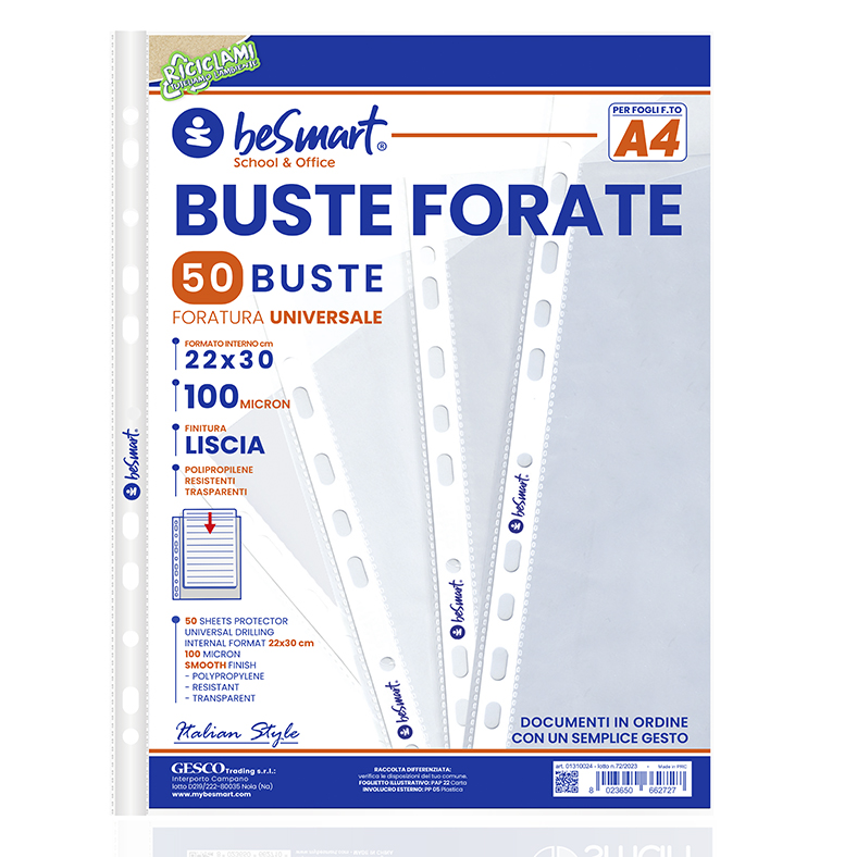 BUSTE FORATE LISCE A4 100MICRON CF 50PZ BESMART