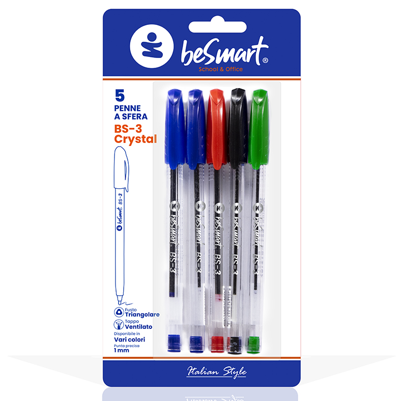 PENNE BS3-CRYSTAL IN BLISTER DA 5 PEZZI ASSORTITI BESMART