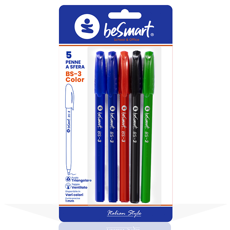 PENNE BS3-COLOR IN BLISTER DA 5 PEZZI ASSORTITI BE SMART