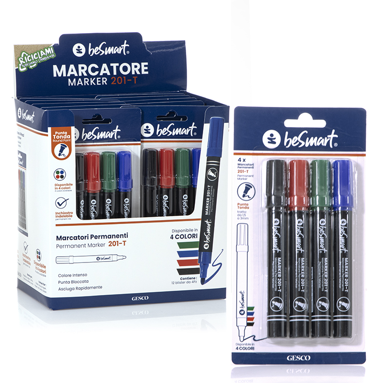MARCATORI P. TONDA COLORI ASSORTITI BLISTER DA 4 IN BOX DA 12pz BE SMART