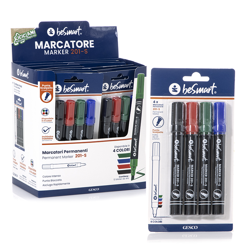 MARCATORI P.SCALPELLO COLORI ASSORTITI BLISTER DA 4 IN BOX DA 12pz BE SMART