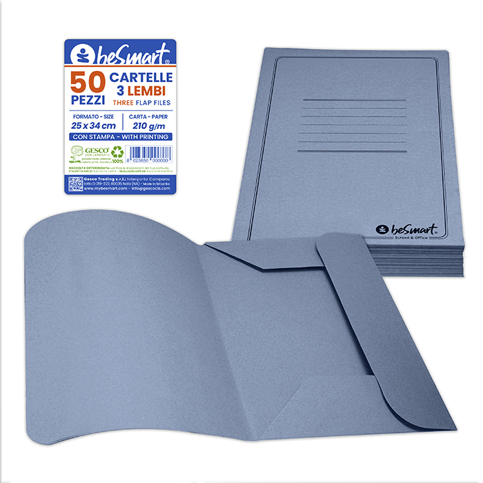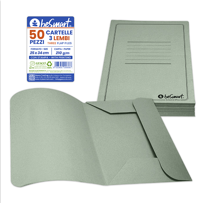 CARTELLE 3 LEMBI 210gr CF.50pz GRIGIO BE SMART